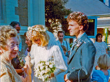 The newly weds Josie and Kent outside Parkside Baptist Church. Edith McNicol on left.